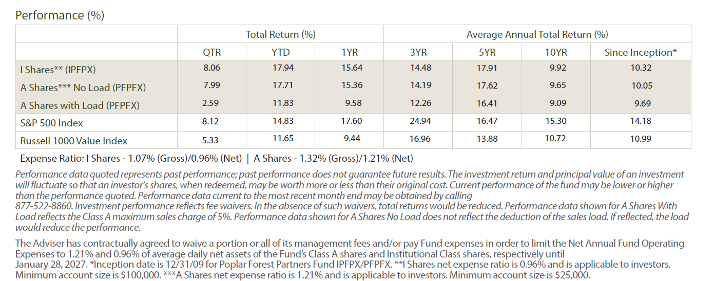 Partners Fund Performance (%) as of 9/30/2025